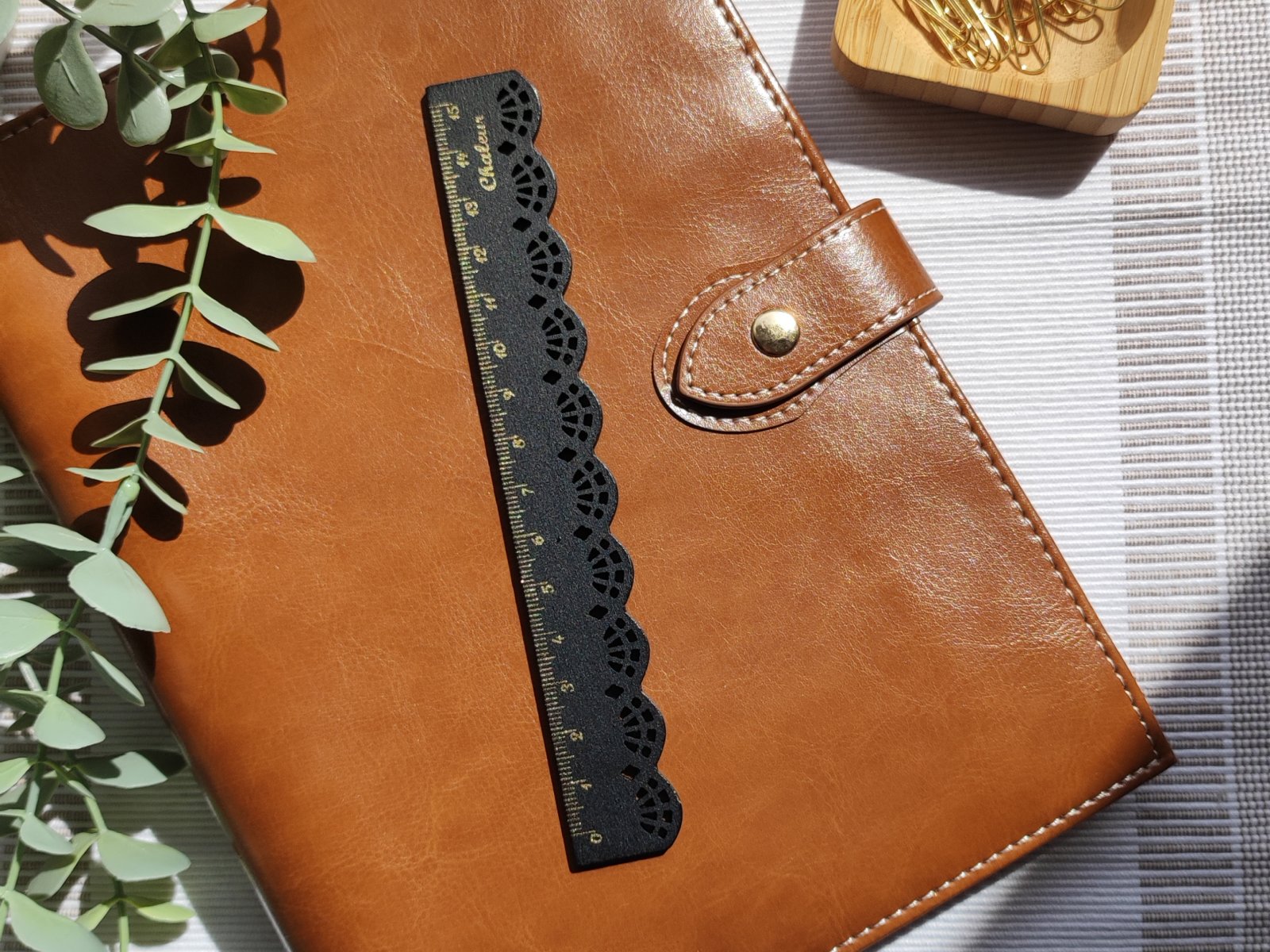 Dieses dekorative Lineal ist mehr als nur praktisch: Mit seiner geschwungenen Wellenkante wird es zum eleganten Detail in Deinem Planer oder Notizbuch. Dank des ultraleichten Designs passt es perfekt in die Seitentaschen von Kalendern und Planerhüllen.